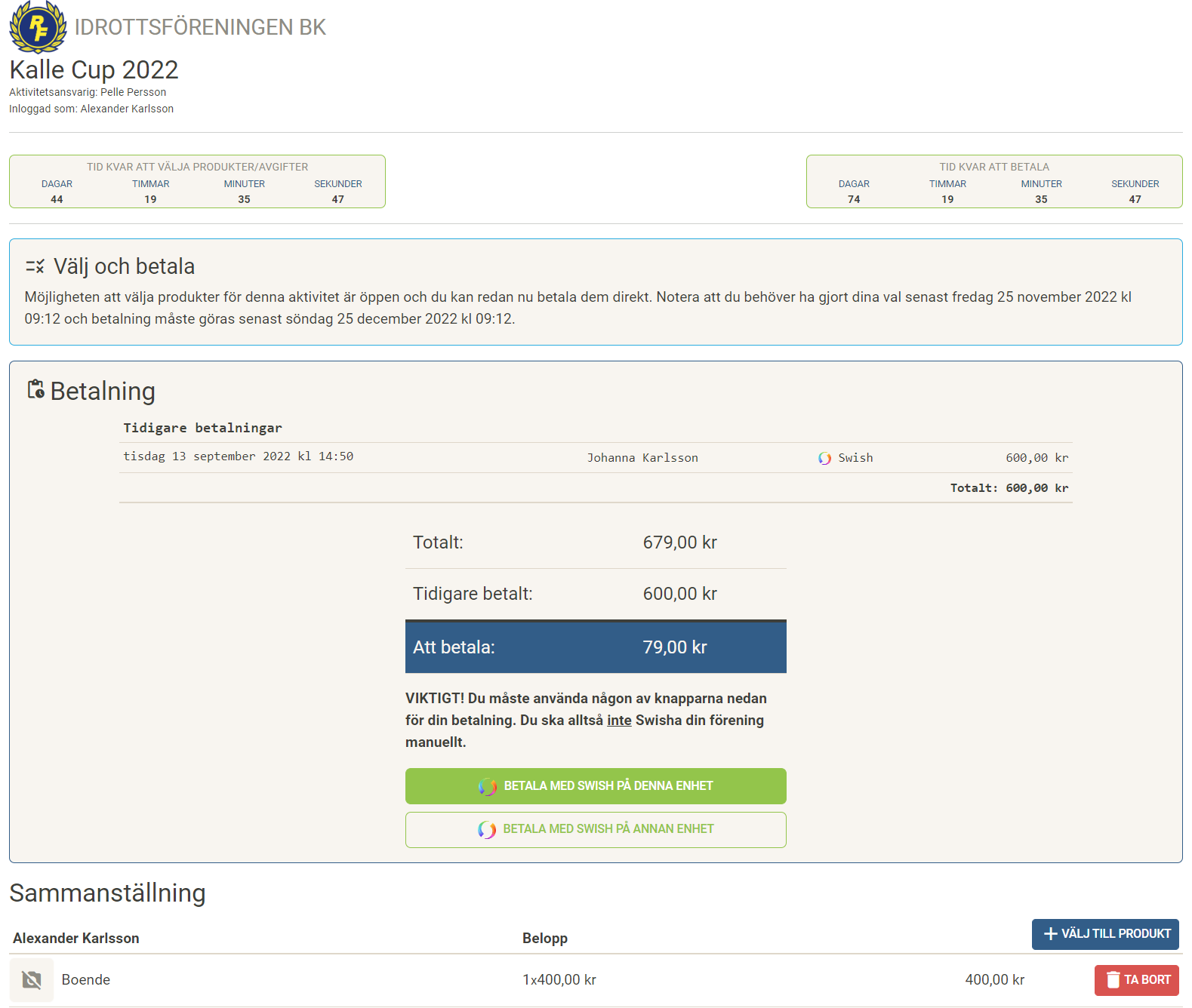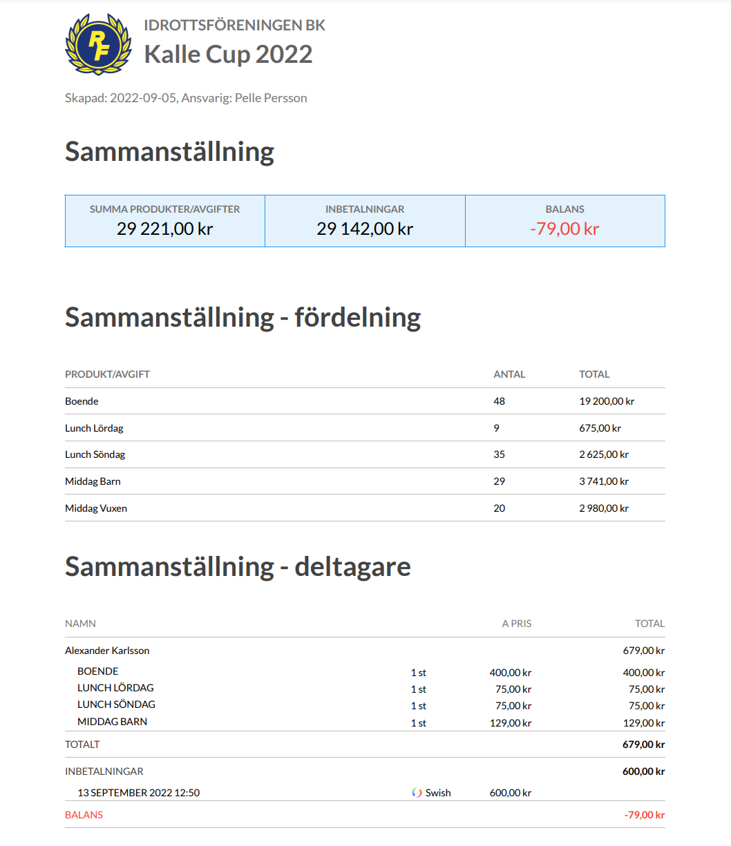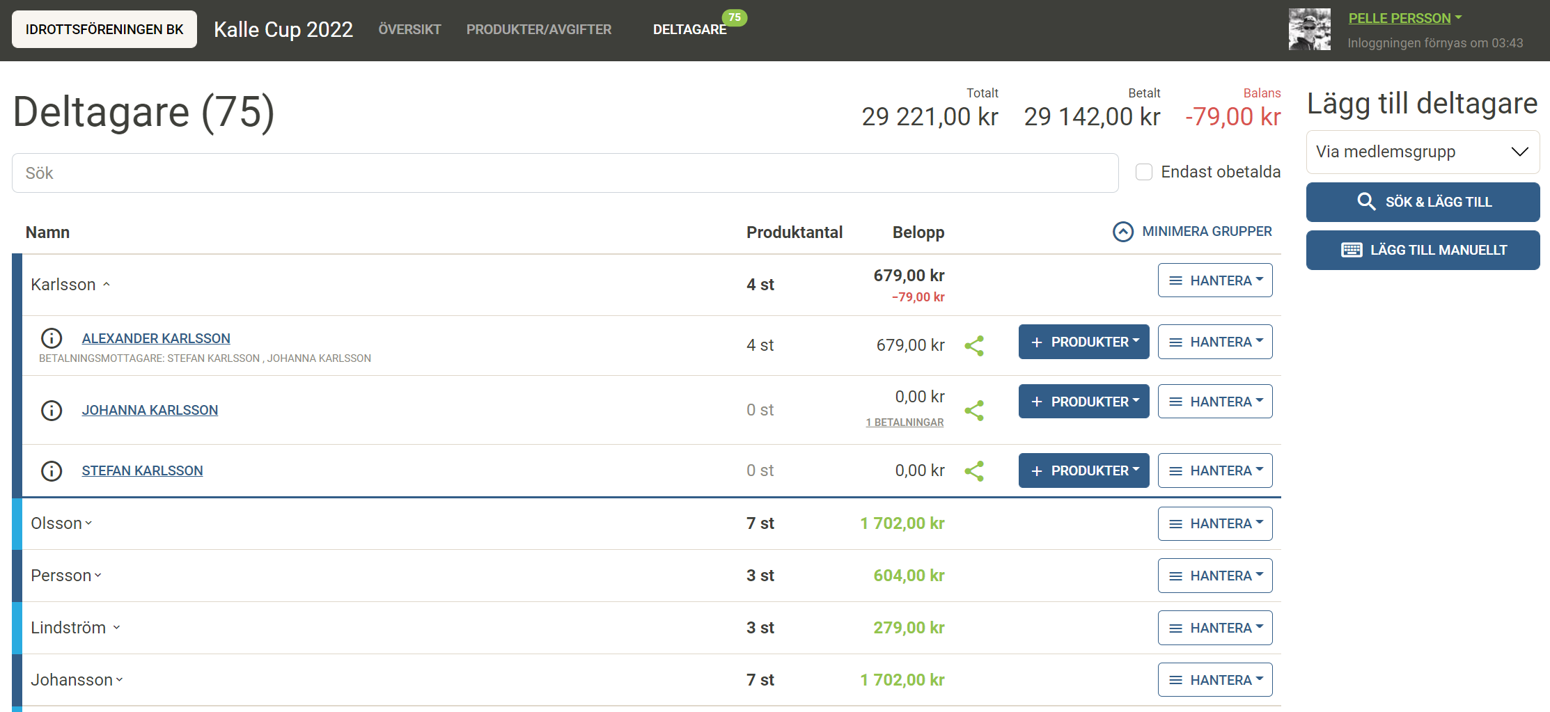Ni som förening kan hela tiden följa medlemmarnas produktval och betalningsstatus per medlem/familj.