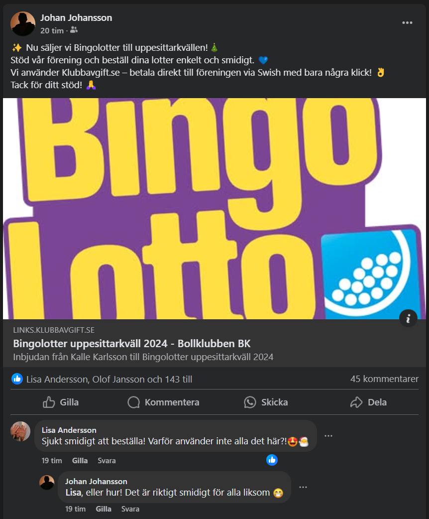 Det är enkelt att komma igång och om DU är nyfiken på hur Klubbavgift kan hjälpa just er förening, skicka ett meddelande via Facebook eller Instagram så får du mer information.